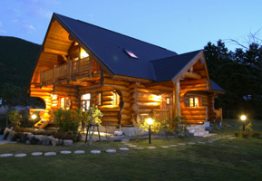 ログハウスの外観3(夜間)